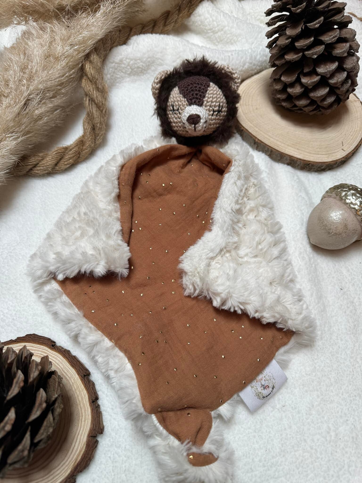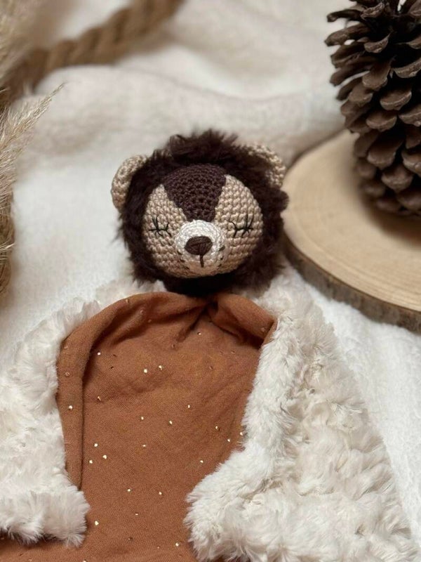 Gaspard, est un doudou Lion entièrement fait à la main au crochet. Composé d'un tissus en gaze de coton et d'un tissu tout doux que vous aurez la possibilité de choisir. Vos petits bouts de choux vont en faire leur favoris. Vous pouvez le rendre encore plus unique en brodant le prénom de votre bébé.